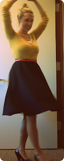 Wearing my skirt backwards today because I realized there's a grease stain on the bum! I would totes rather have that on my front. This girl doesn't need any more reasons for people to stare back there!